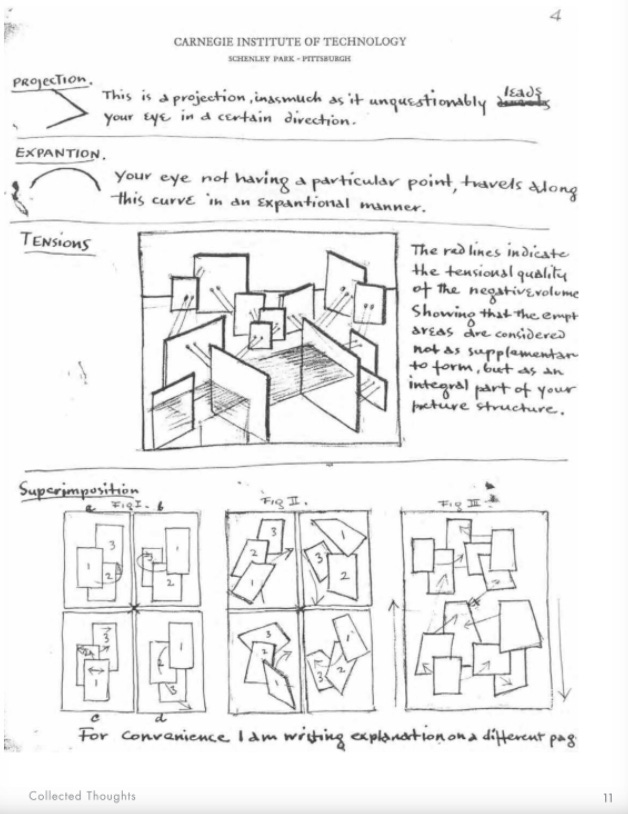 “The artists medium is space. Space maybe regarded as composed of two elements: 1, occupied that is positive (form) and 2, unoccupied or negative space (volume).” Alexander Kostellow in a letter to Ross Moffett Oct 12, 1930